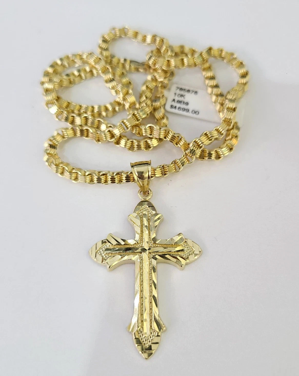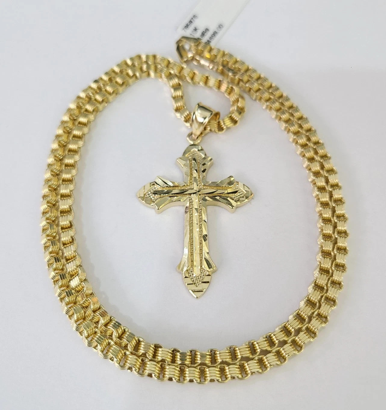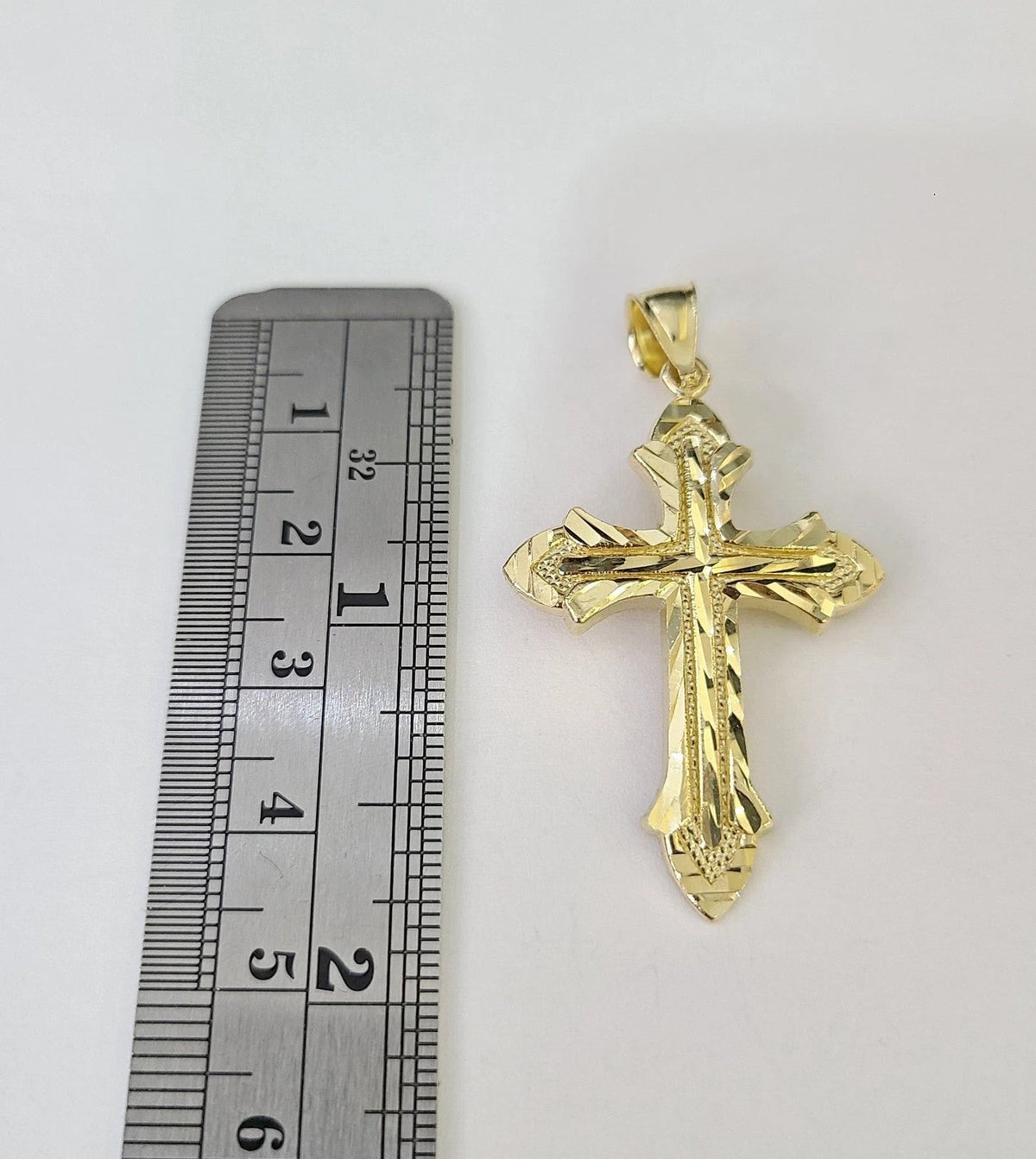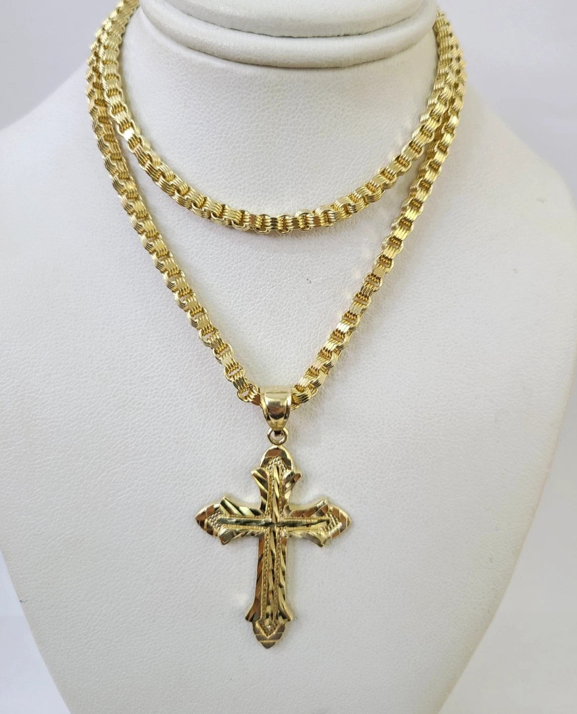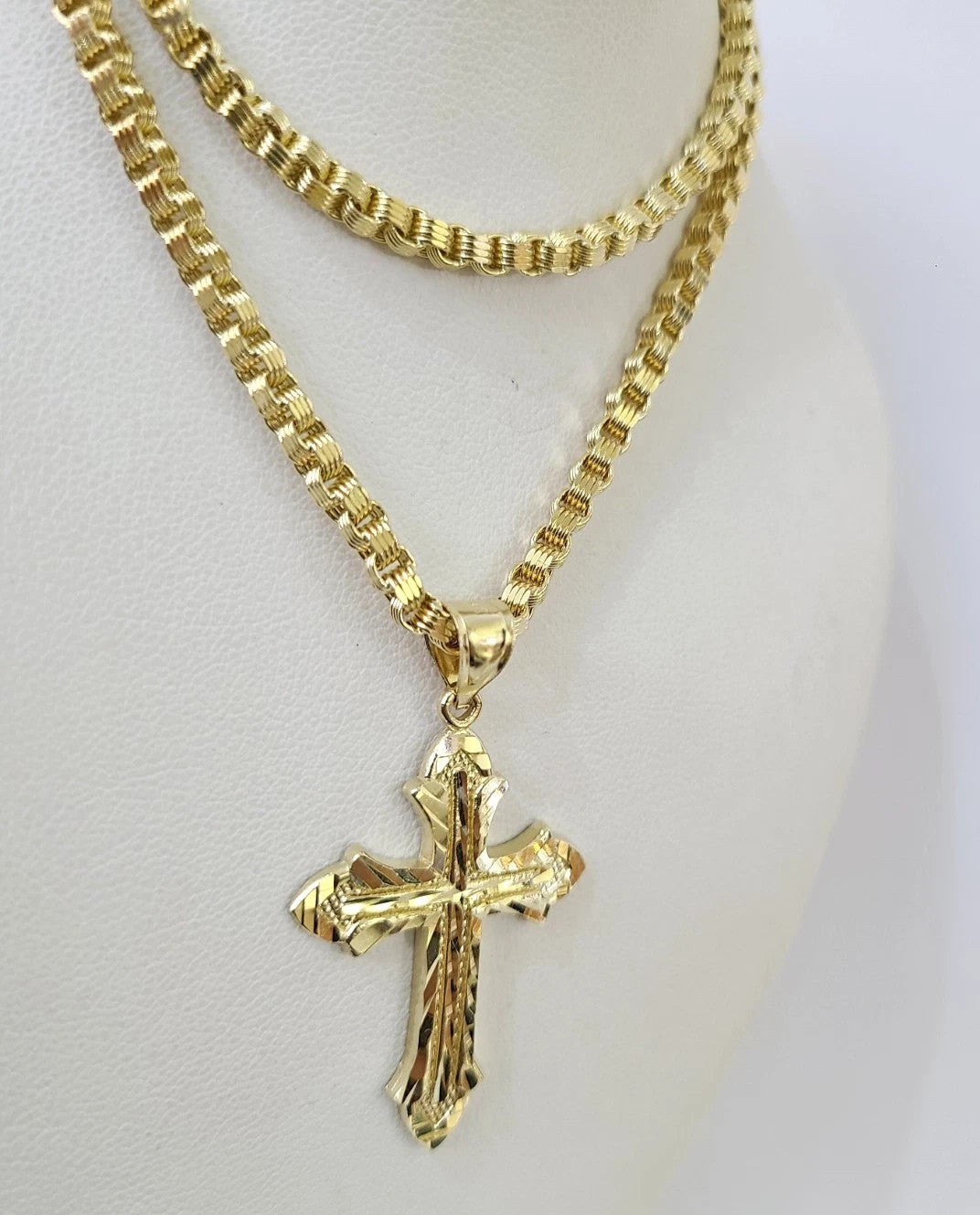 10k Gold Byzantine Necklace Jesus Cross Charm 20-30 inches 3mm Pendant SET
