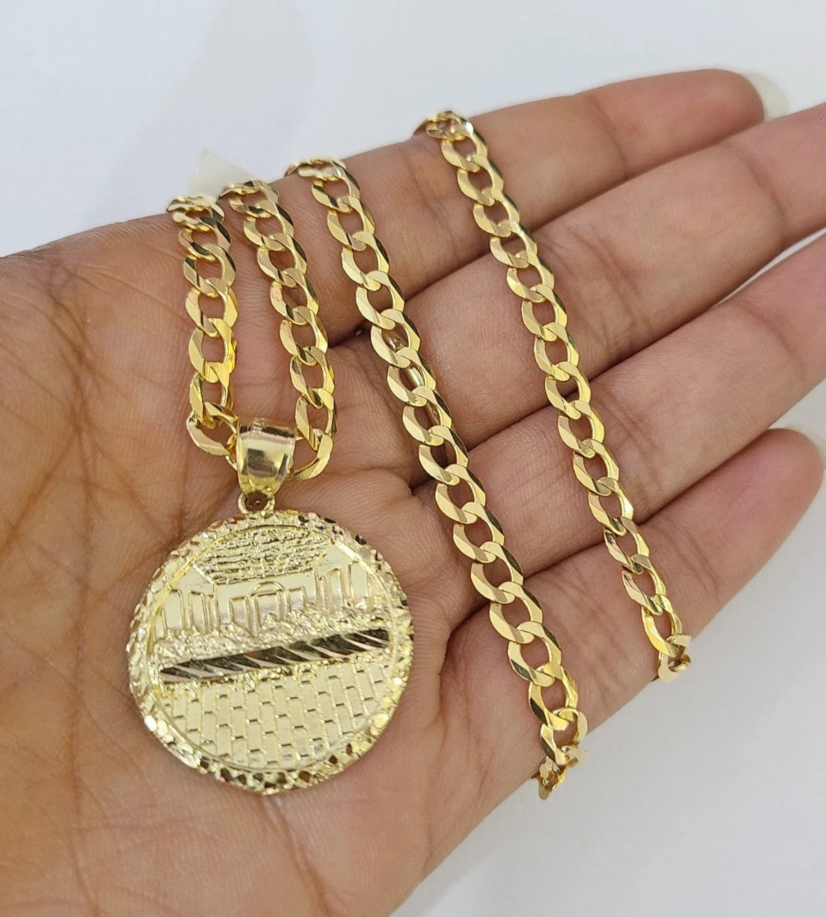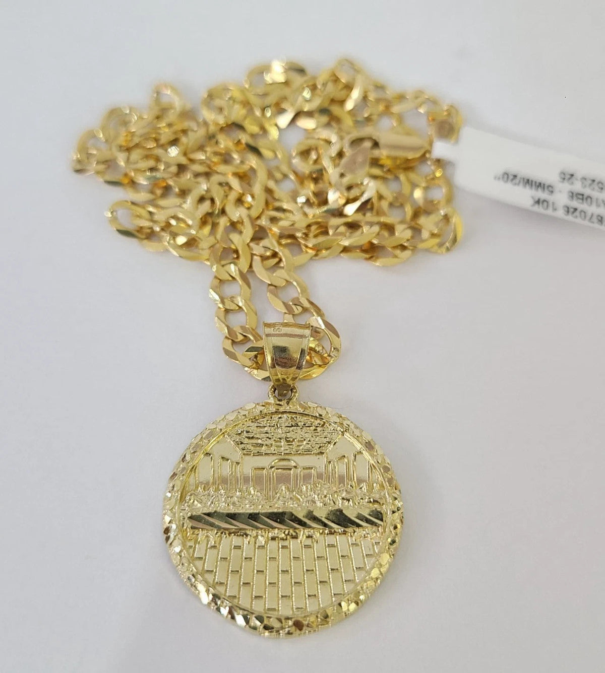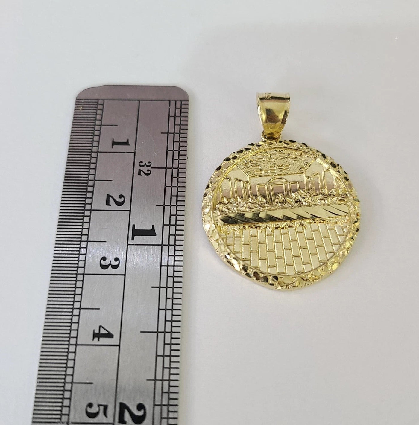 We present You with This Absolutely Stunning Real 10k Yellow Gold Cuban Curb Link Chain with Last Supper Pendant. It has a detailed cut with a very good finish. These Beautiful Chains will not tarnish, discolor, or fade because they are Pure 10K Gold. Please feel free to contact us if you have any queries regarding the item. 20"-A10B8 A3B0