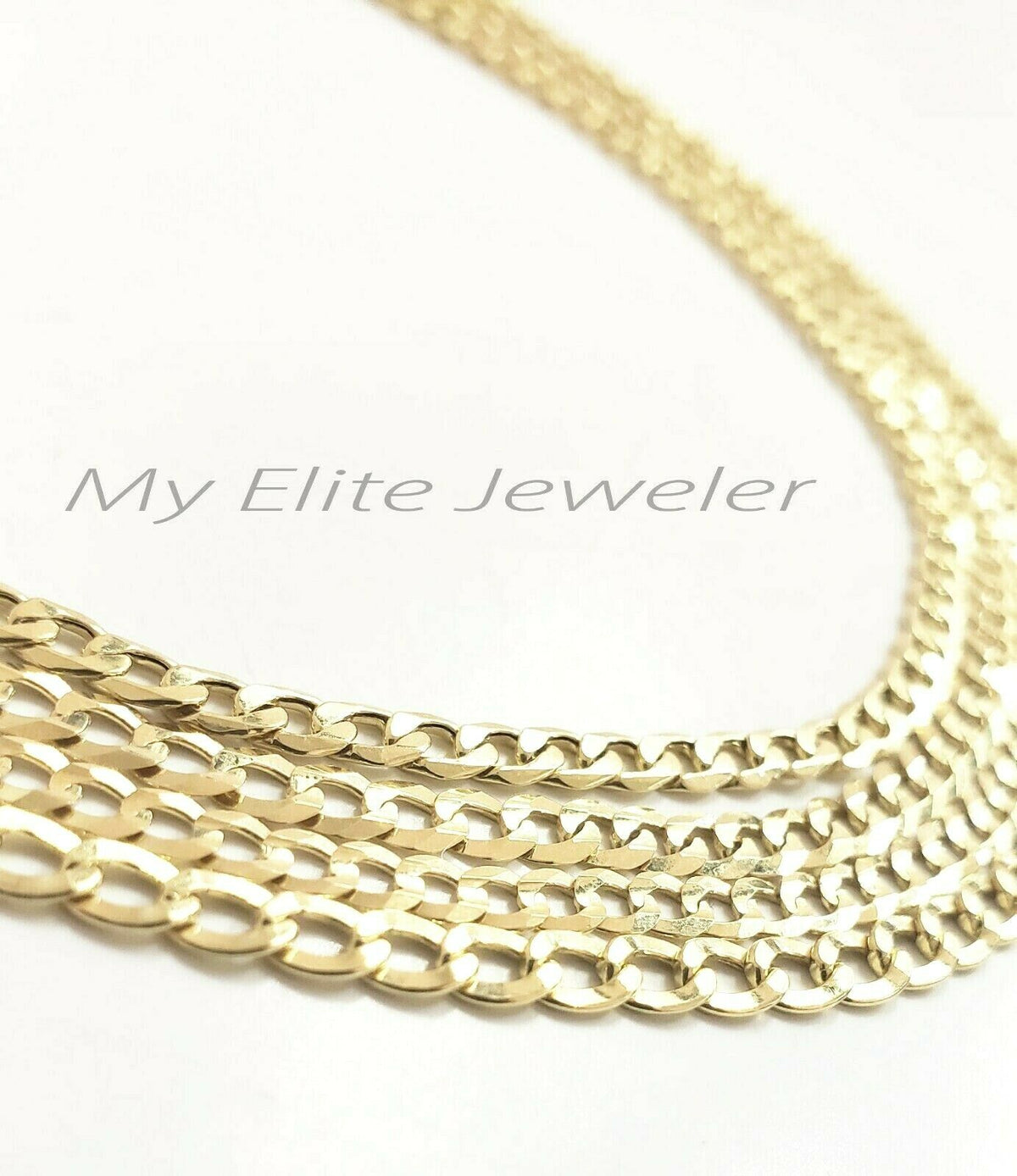 10K Gold Cuban Link Curb Chain Length 18" 20" 22 24" Inch 3mm Necklace Men Women