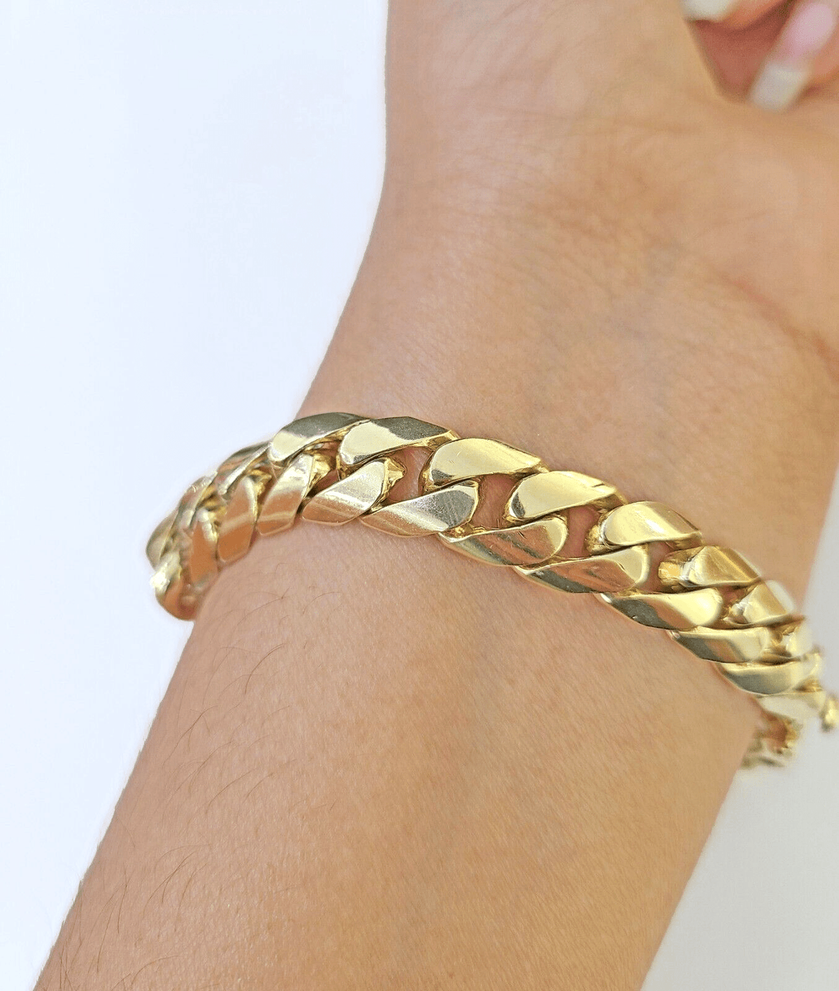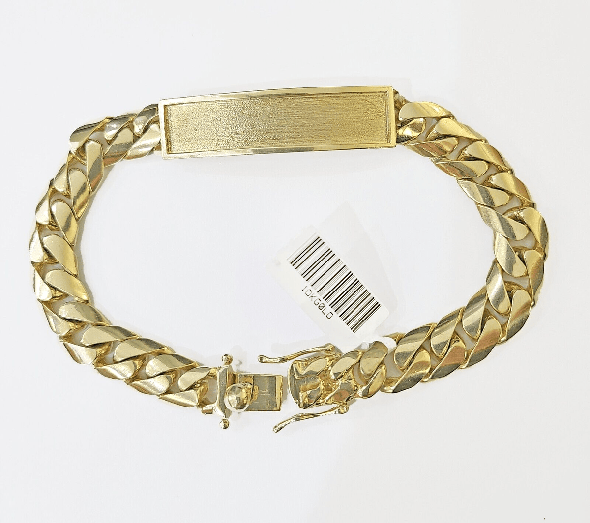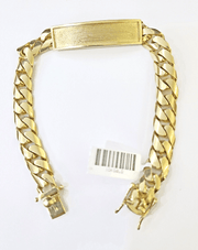Is Presenting You with This Absolutely Stunning Real 10K Gold ID Bracelet With Miami Cuban Link 10 mm 9"inches��.��These Beautiful hand Bracelet will not tarnish, discolor, or fade because they are Pure 10K Gold.��We also have them in various another sizes. Please feel free to contact us if you have any queries regarding the item.