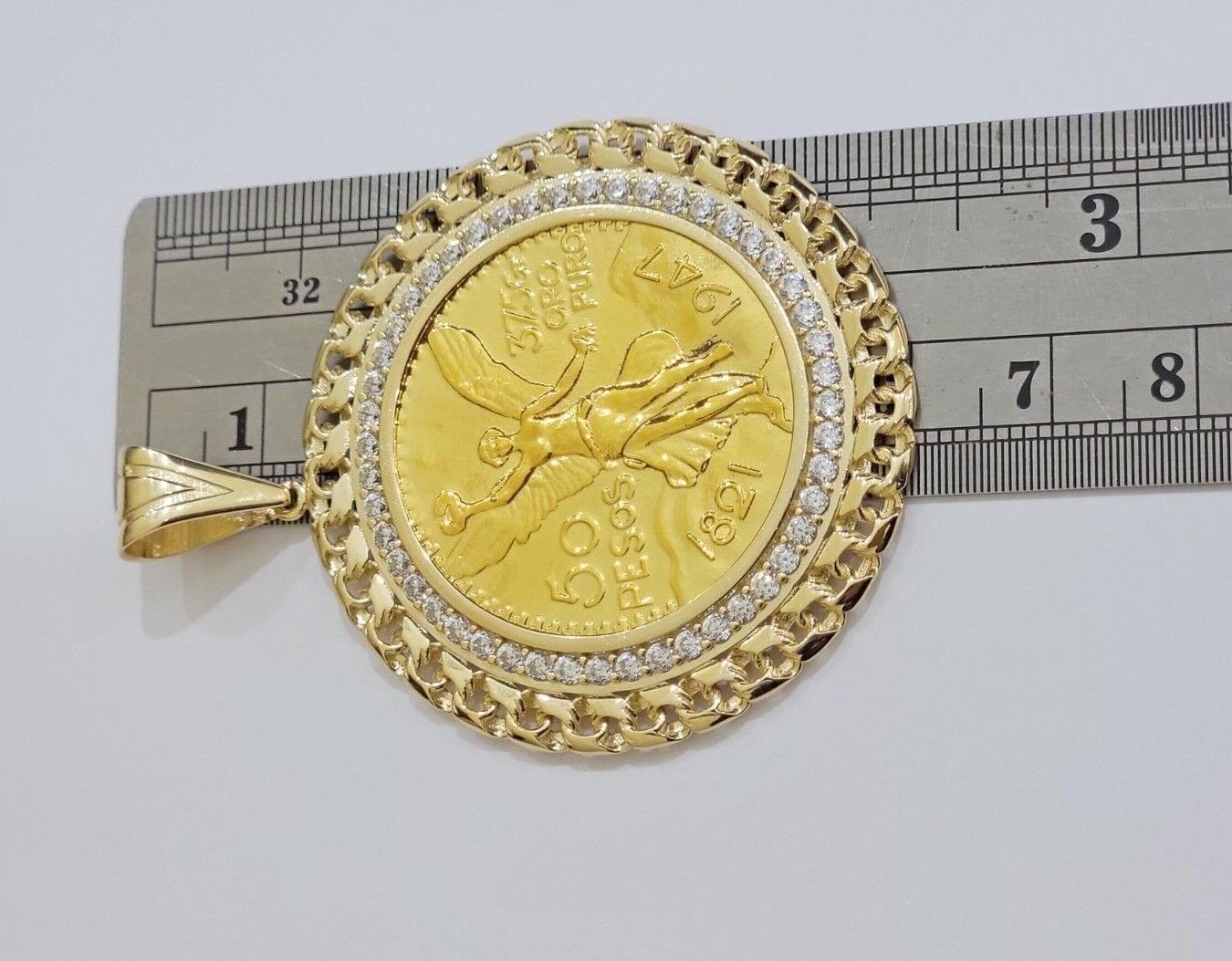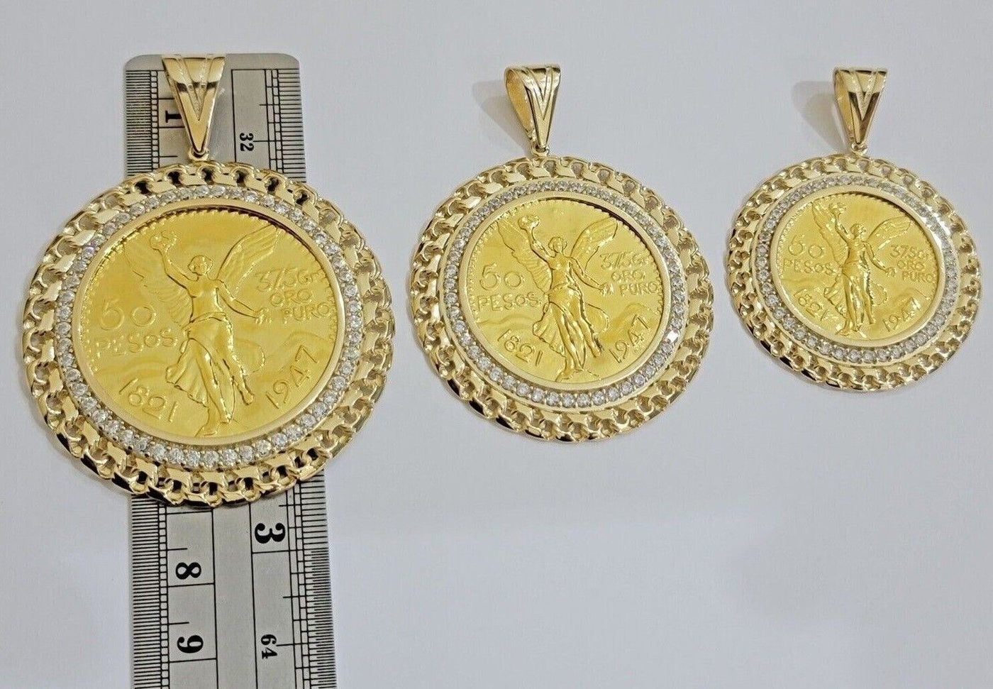 10k Gold Mexican Centenario Copy Coin Charm 50 Pesos Bezel 10kt Pendant Replica