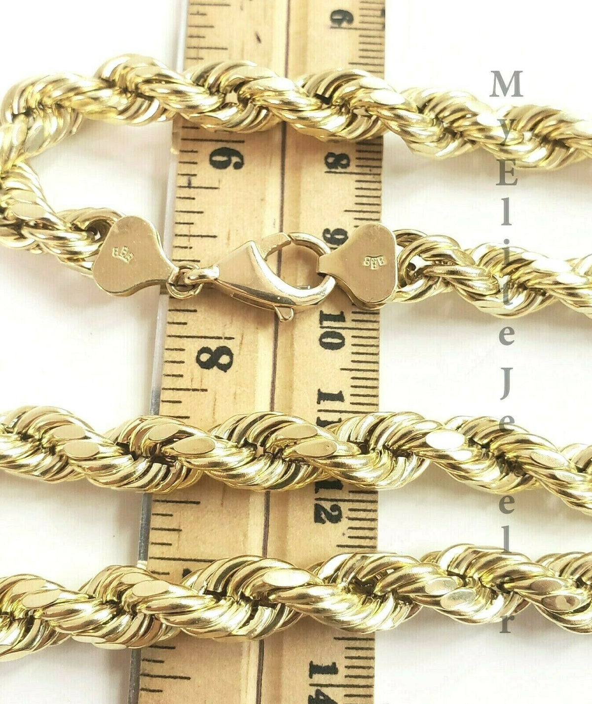 10 k Yellow Gold ( Real , Not plated , Not filled ) Hollow Rope chain For Men's . The Width of the necklace is 8 mm and 20 Inch Long . The Clasp is Lobster Lock. The chain is Beautiful and can be worn with the pendant. If you are not happy with the way it looks or feels, we do offer 30 - Days FREE Return shipping.