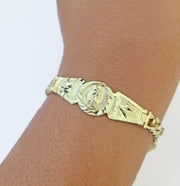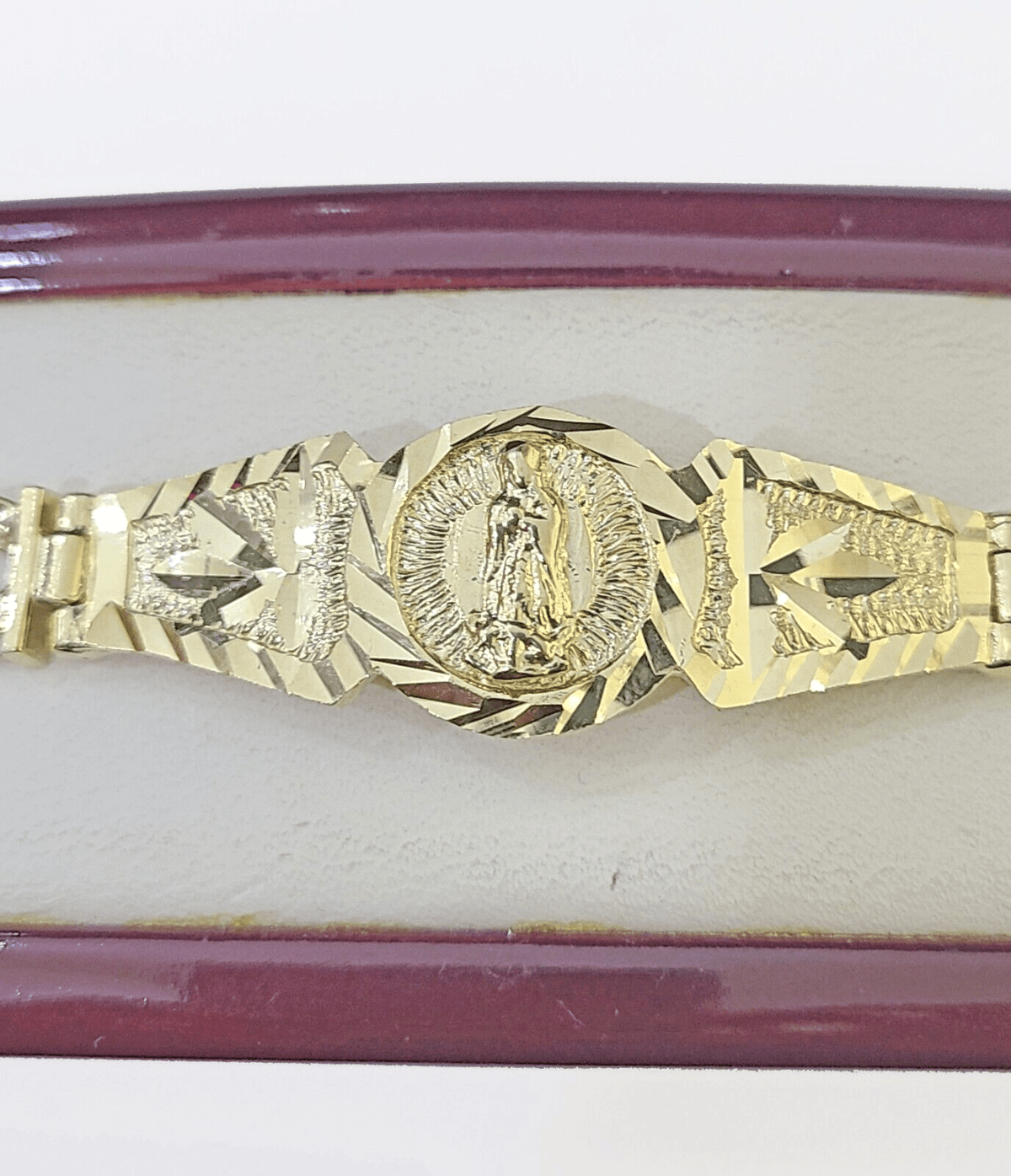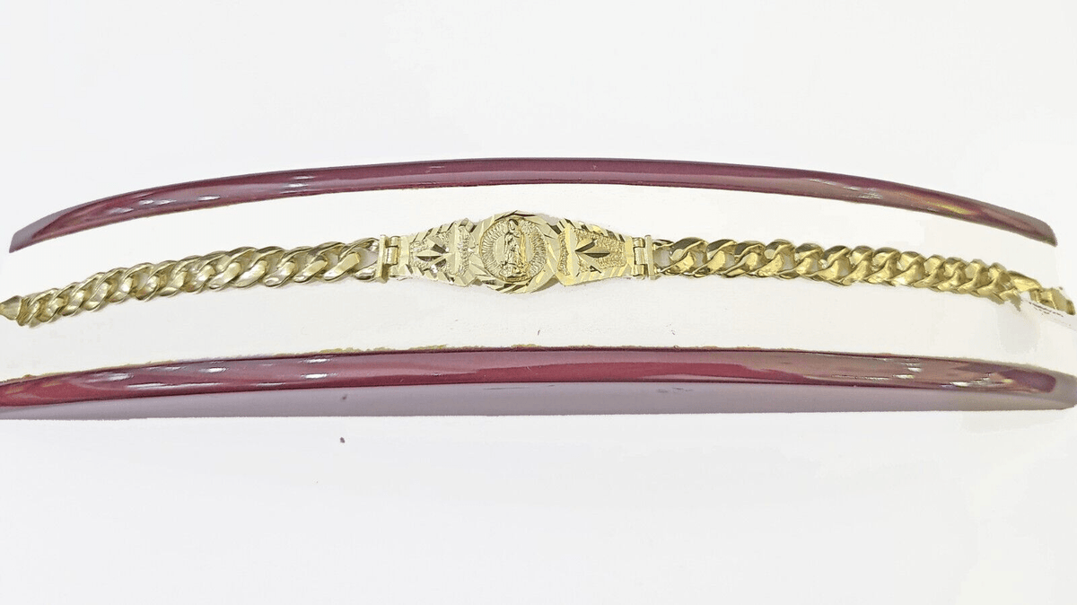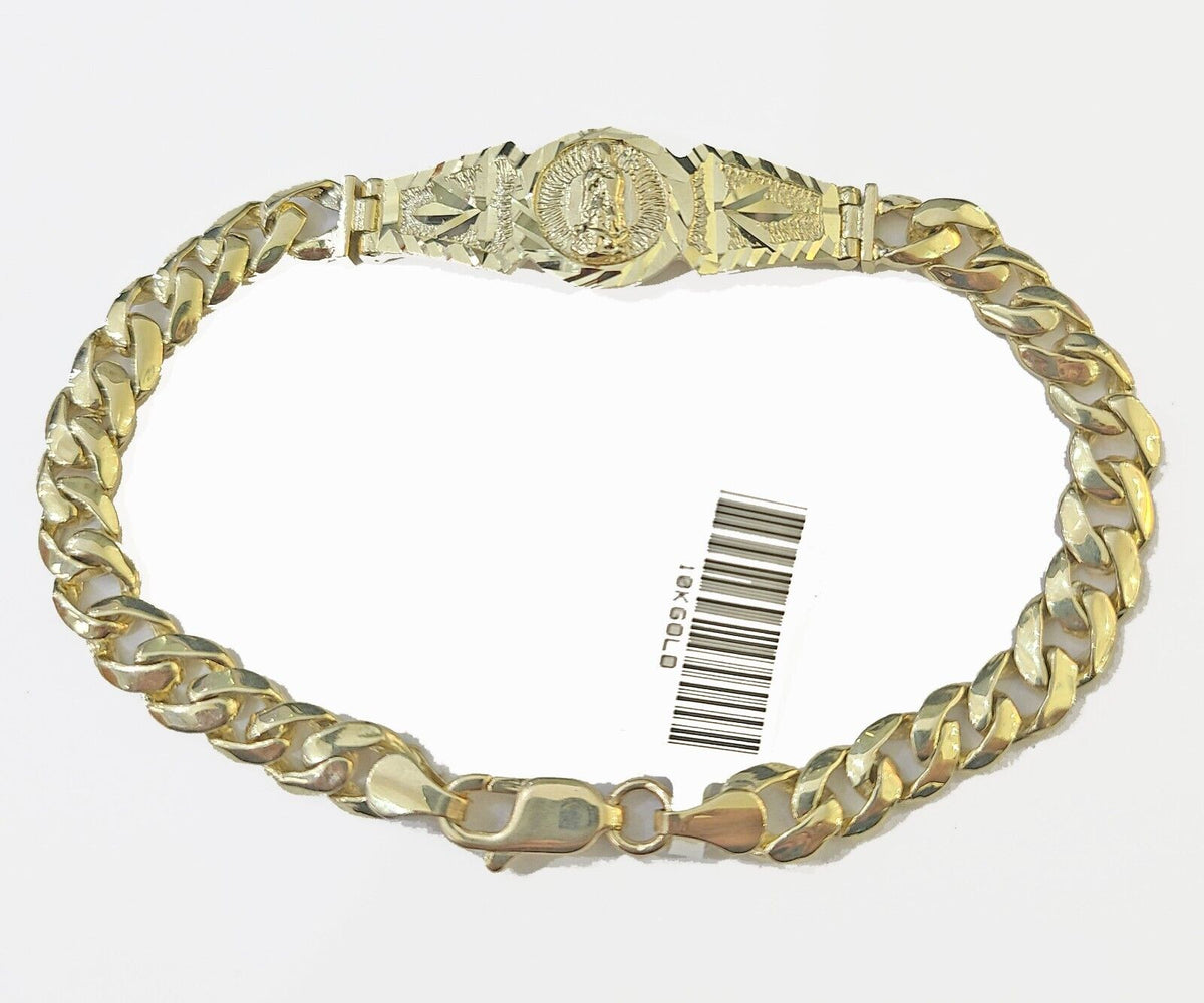 Is Presenting You with This Absolutely Stunning��10k Gold Virgin Mary Miami Cuban Bracelet Size 8" Inches 7mm with lobster lock.��The links are very strong and made up of 10K. These Beautiful Bracelets will not tarnish, discolor, or fade because they are Pure 10K Gold.