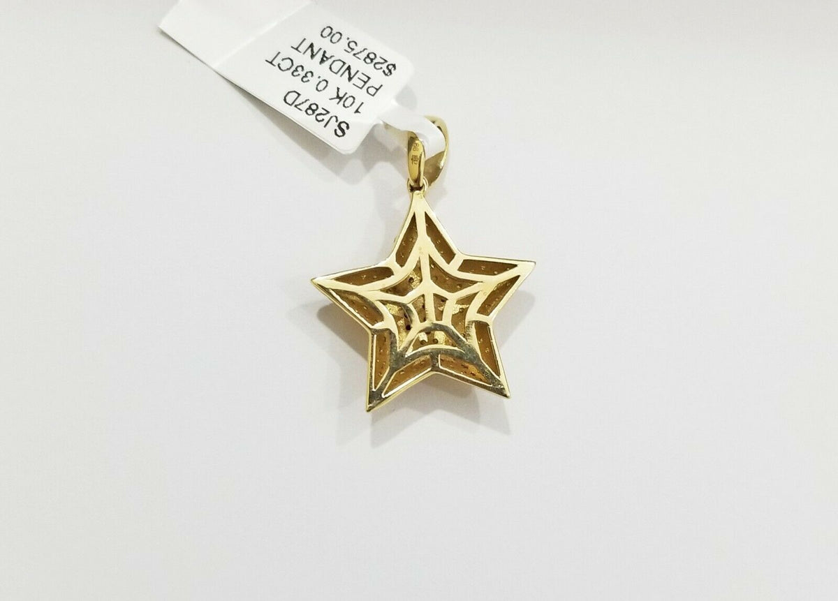 10k Gold Men's Pendant Yellow Diamond Star Charm, 10kt Yellow Gold Diamond, REAL