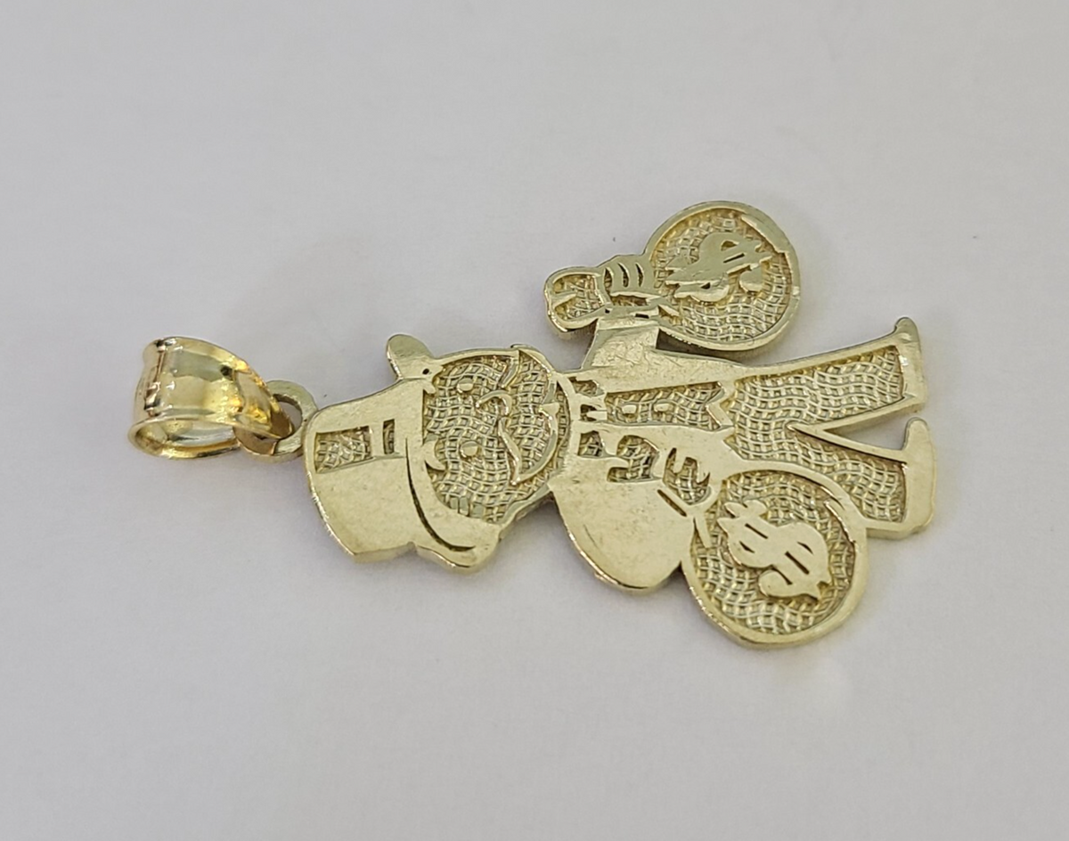 10k Yellow Gold Real (Not plated, Not filled) Grandpa Money Bag Pendant. The pendant can be worn with any chain. The pendant is considered durable. If you are not happy with the way it looks or feels, we do offer 30 - Days FREE Return shipping. Please note that this listing does not include a Necklace.