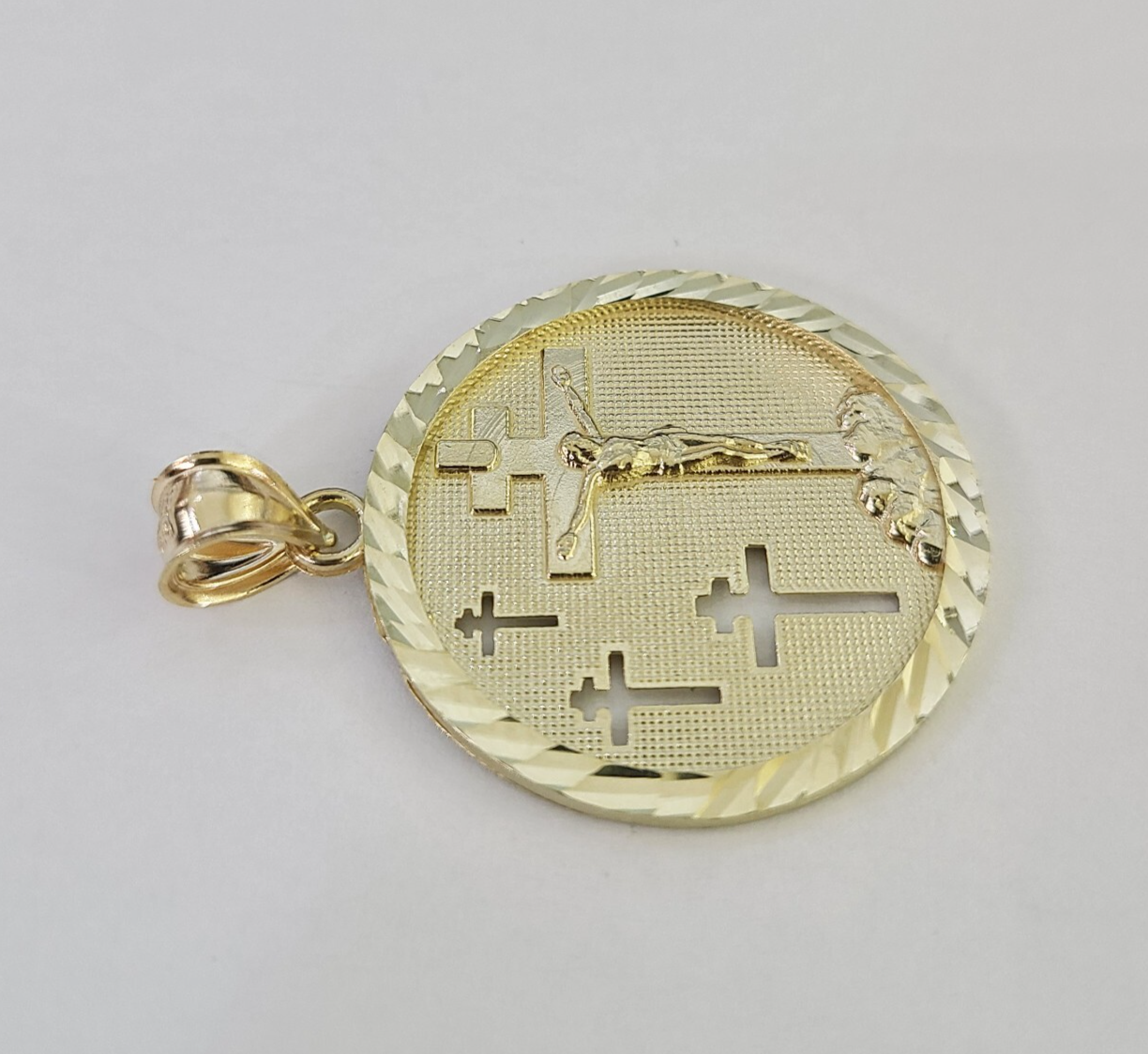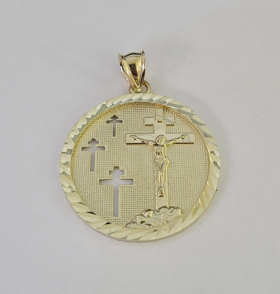 10k Yellow Gold Jesus Crucifix Medallion Charm Pendant REAL 10kt
