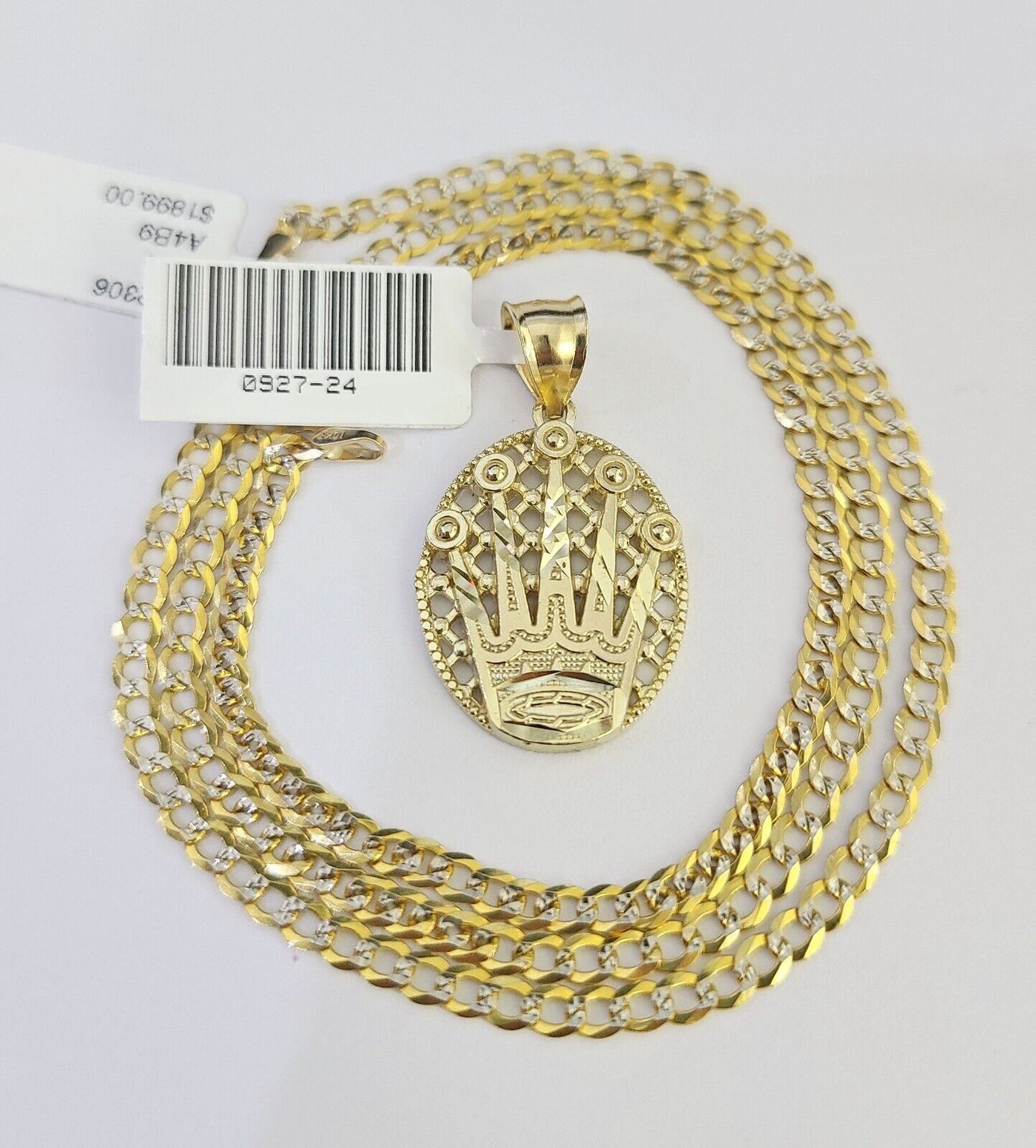 We present You with This Absolutely Stunning Real 10k Yellow Gold SOLID Cuban Curb link Chain Diamond Cuts with Crown Charm. It has a detailed cut with a very good finish. These Beautiful Chains will not tarnish, discolor, or fade because they are Pure 10K Gold. Please feel free to contact us if you have any queries regarding the item. 20"-A5B0 A2B5