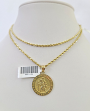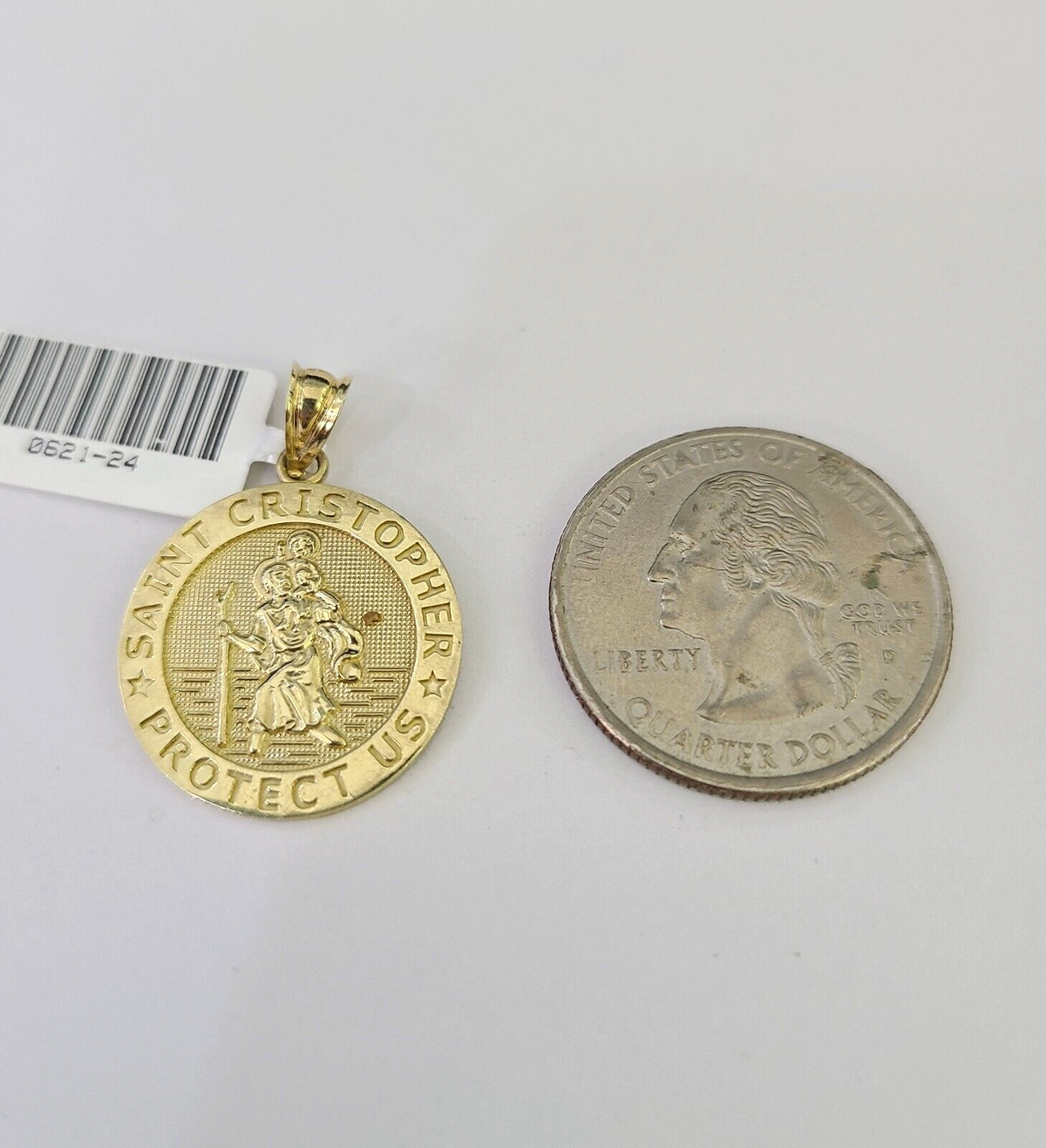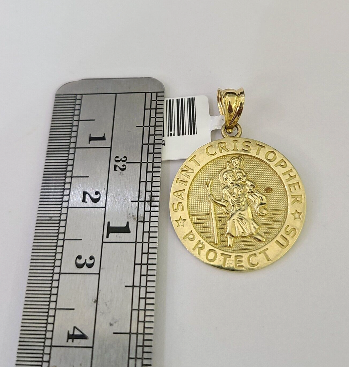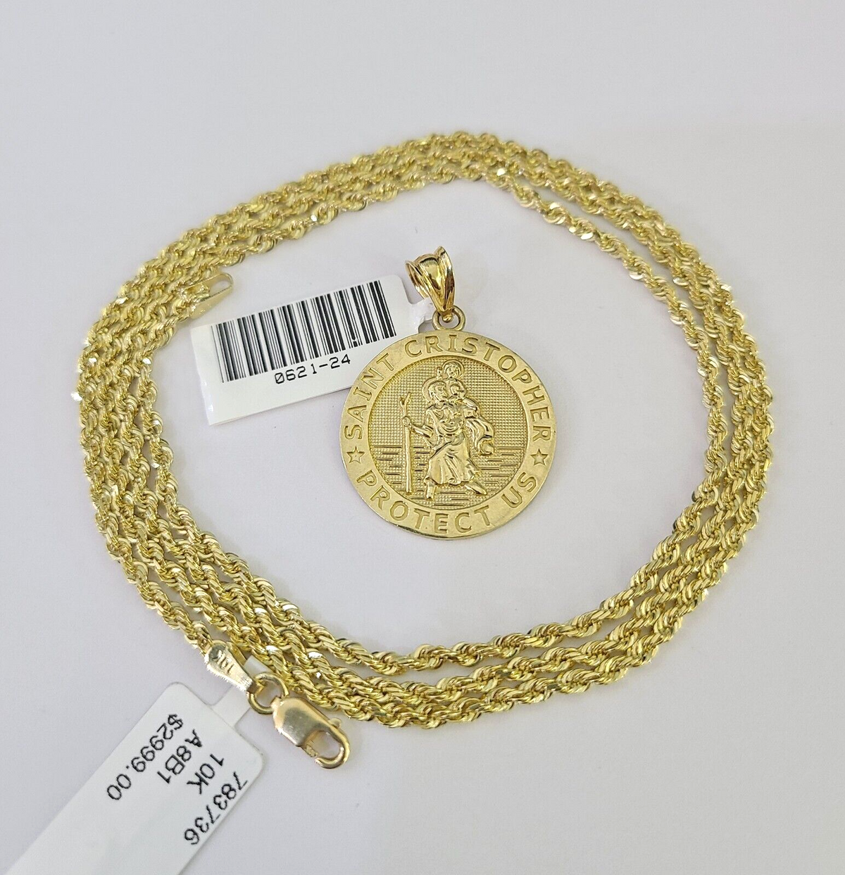Is Presenting You with This Beautifully Designed Real 10k Yellow Gold Saint Cristopher Charm with 10k 2mm Solid Rope Chain in various lengths. Please feel free to contact us if you have any queries regarding the item. These Beautiful chains and pendants will not tarnish, discolor, or fade because they are Pure 10K Gold. 22"-A7B4 , A2B3 Ask