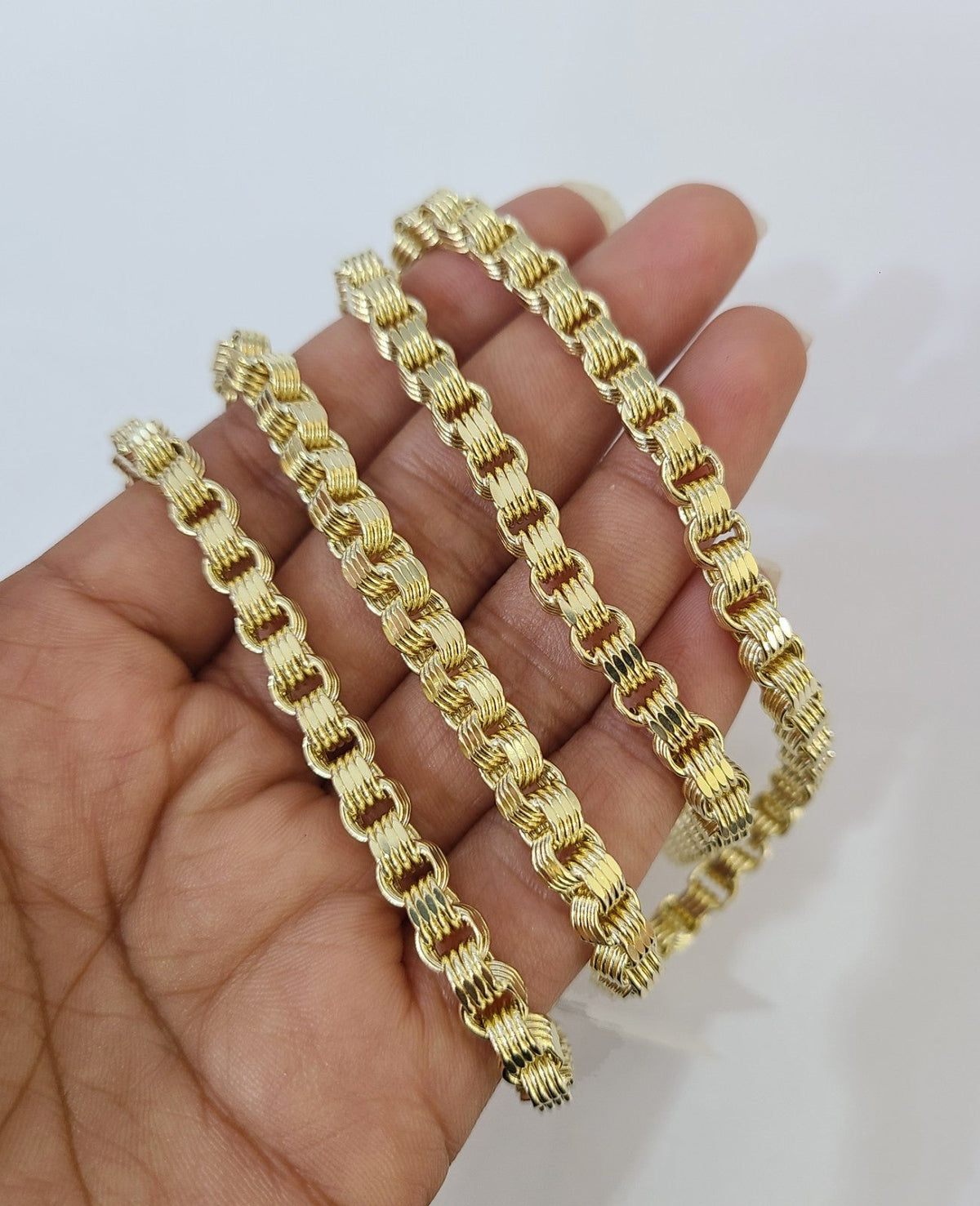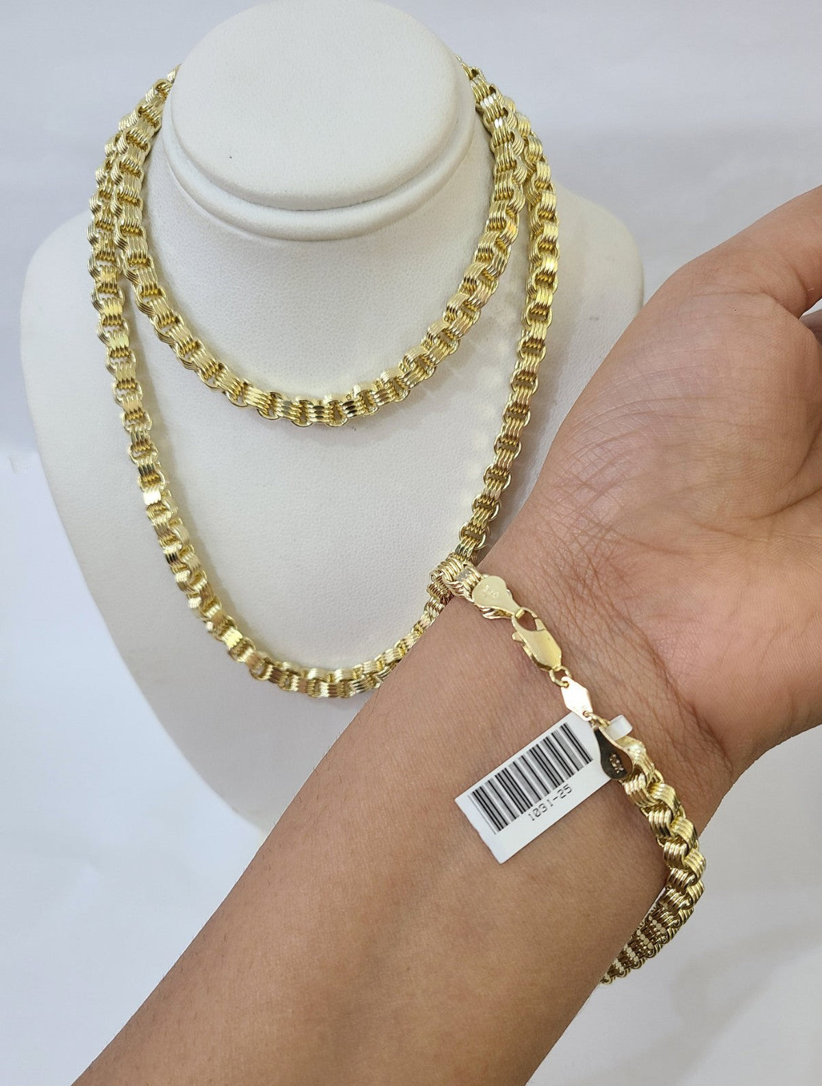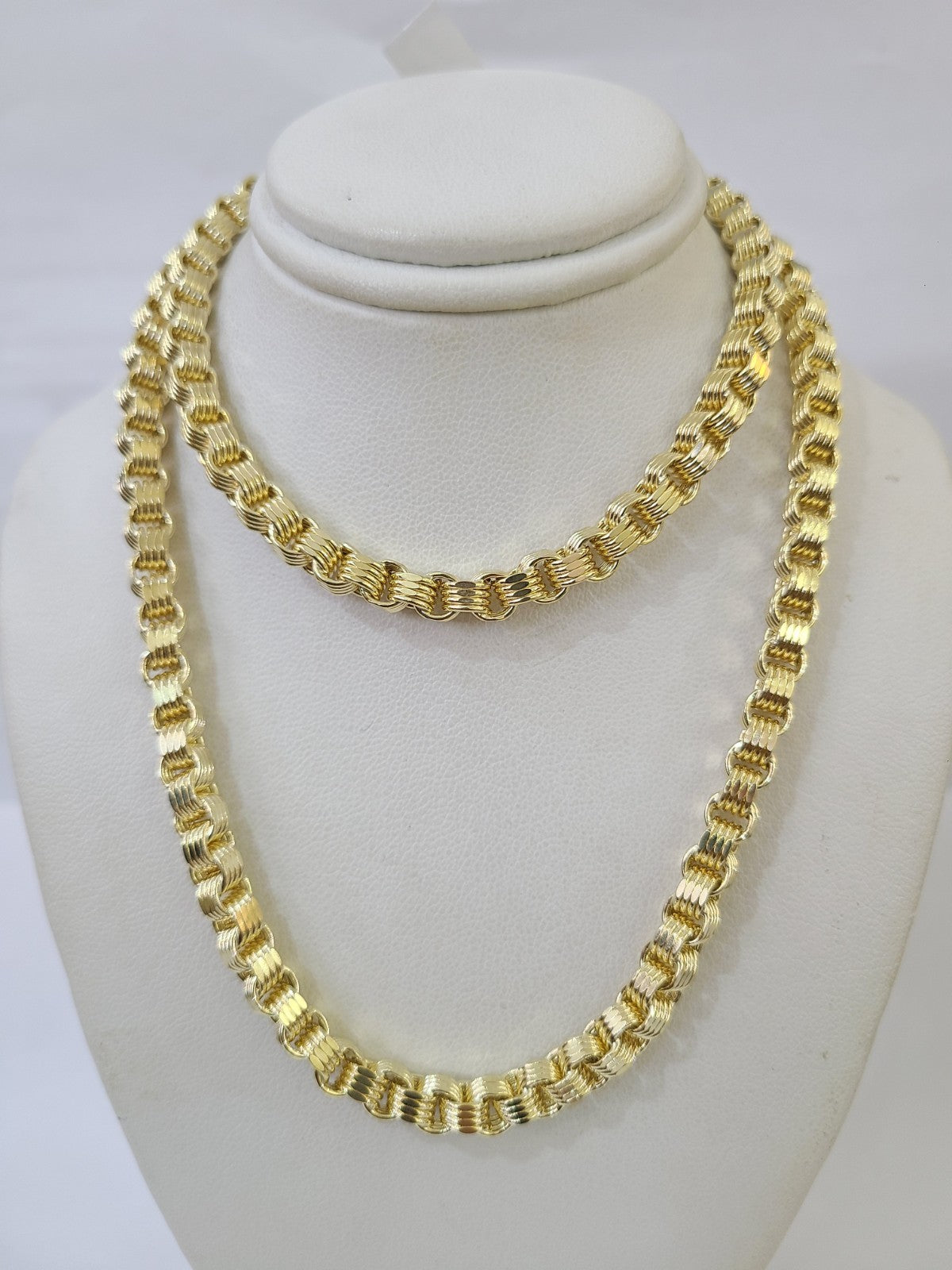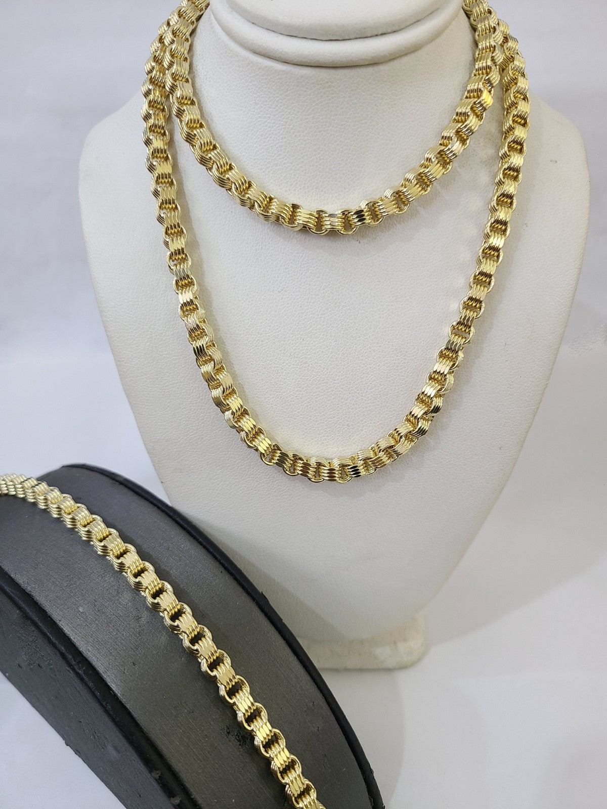 Is Presenting You with This Absolutely Stunning Real 10k Yellow Gold 5mm Byzantine Chain and Byzantine Bracelet Set. These Beautiful Chain and Bracelet will not tarnish, discolor, or fade because they are Pure 10K Gold. We also have them in various another sizes. Please feel free to contact us if you have any queries regarding the item. 24": A21B5 9": A8B3