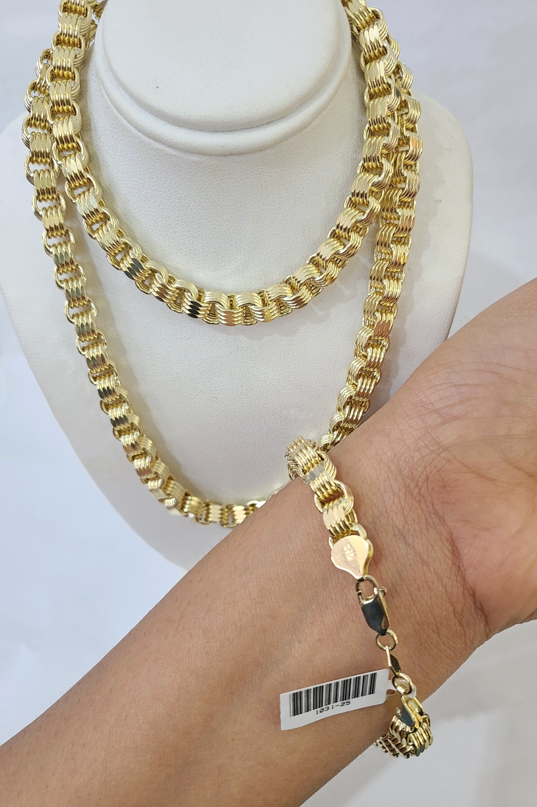 Is Presenting You with This Absolutely Stunning Real 10k Yellow Gold 6mm Byzantine Chain and Byzantine Bracelet Set. These Beautiful Chain and Bracelet will not tarnish, discolor, or fade because they are Pure 10K Gold. We also have them in various another sizes. Please feel free to contact us if you have any queries regarding the item. 26": A26B0 9": A8B8