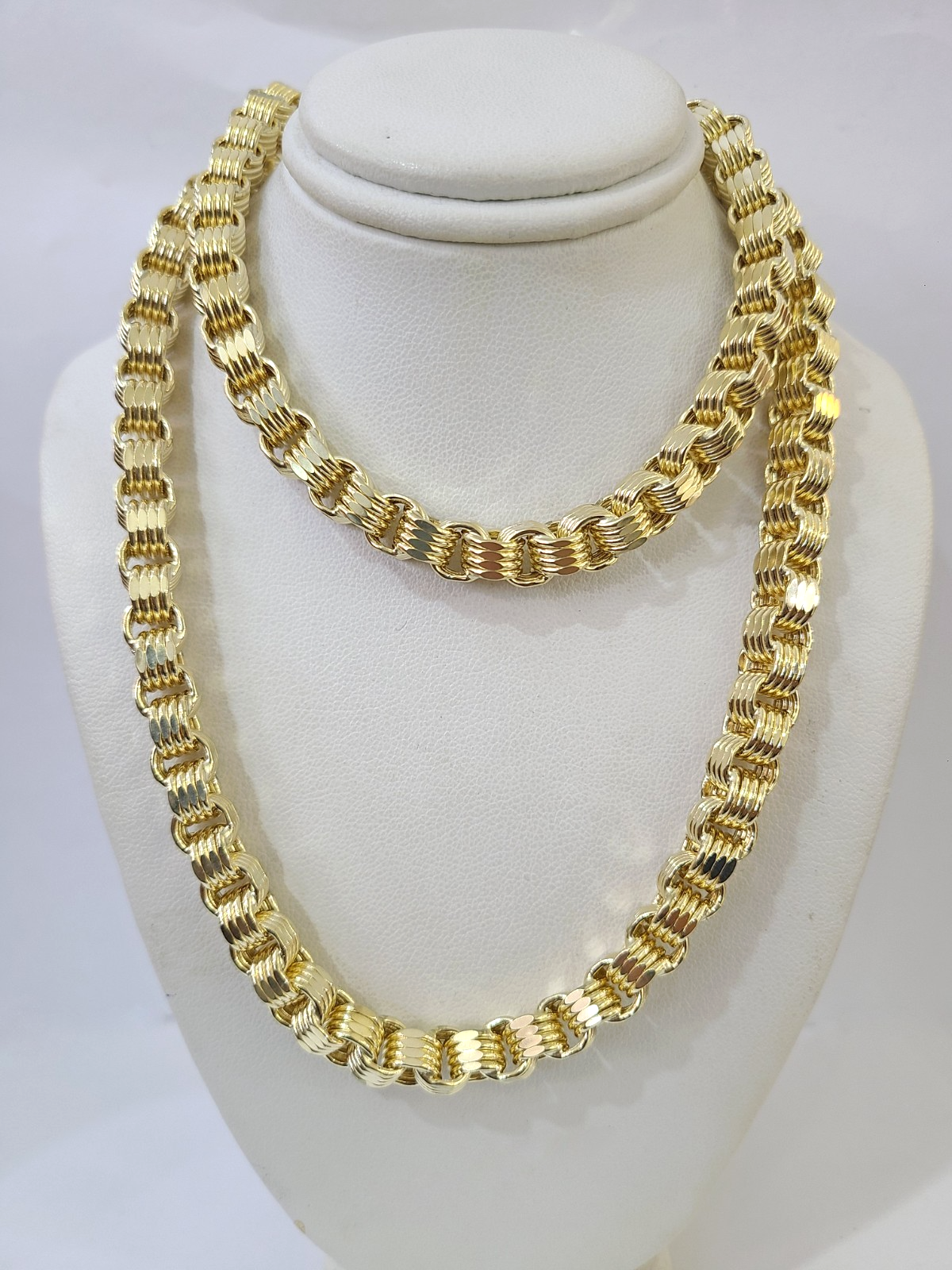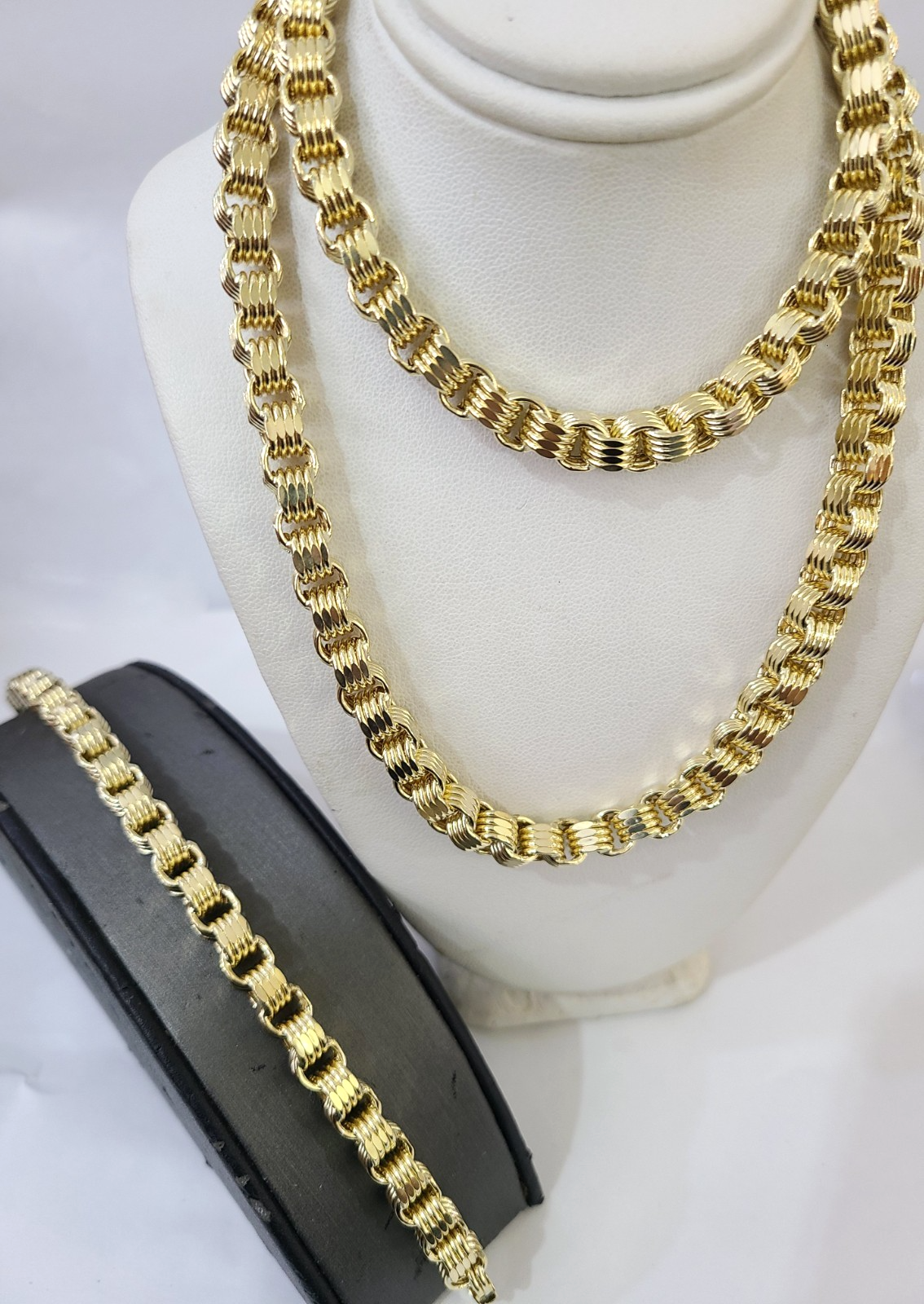 Is Presenting You with This Absolutely Stunning Real 10k Yellow Gold 7mm Byzantine Chain and Byzantine Bracelet Set. These Beautiful Chain and Bracelet will not tarnish, discolor, or fade because they are Pure 10K Gold. We also have them in various another sizes. Please feel free to contact us if you have any queries regarding the item. 26": A33B3 9": A11B4