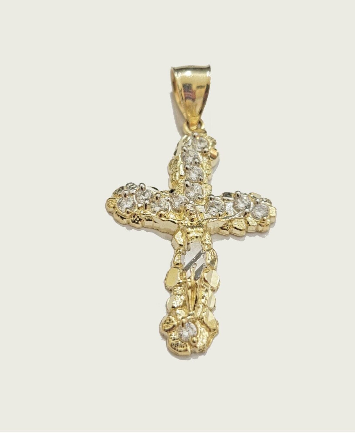 10 k Yellow Gold Real (Not plated , Not filled ) Cross charm pendant . The Length of the Pendant is 1.5 inch (approx. ) Long . The pendant can be worn with any chain. The pendant is considered durable. If you are not happy with the way it looks or feels, we do offer FREE Return shipping.