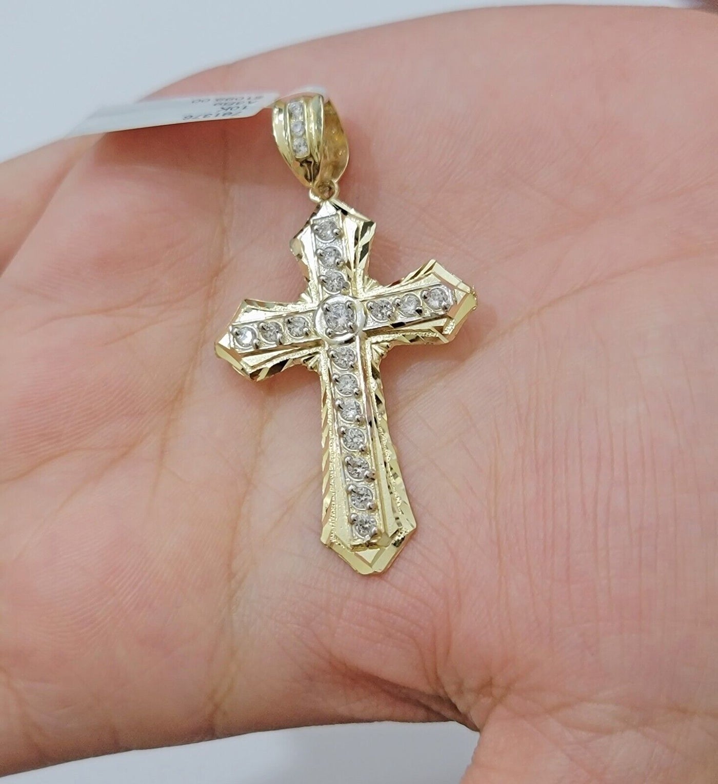 10 k Yellow Gold Real (Not plated , Not filled ) Cross charm pendant . The Length of the Pendant is 2 inch (approx. ) Long and 4.6 grams. The pendant can be worn with any chain. The pendant is considered durable. If you are not happy with the way it looks or feels, we do offer FREE Return shipping.