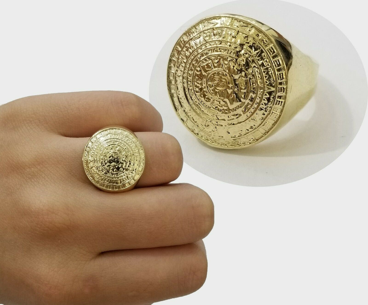 GOLD Mens Ring Aztec Mayan Solid 10k Yellow Gold Sun Calendar 10 KT REAL Gold - 10