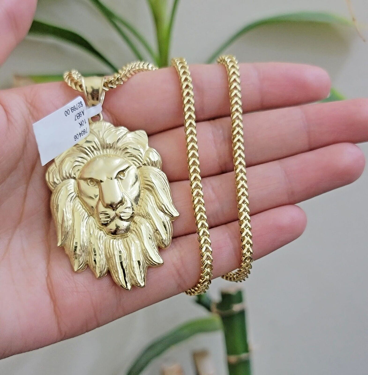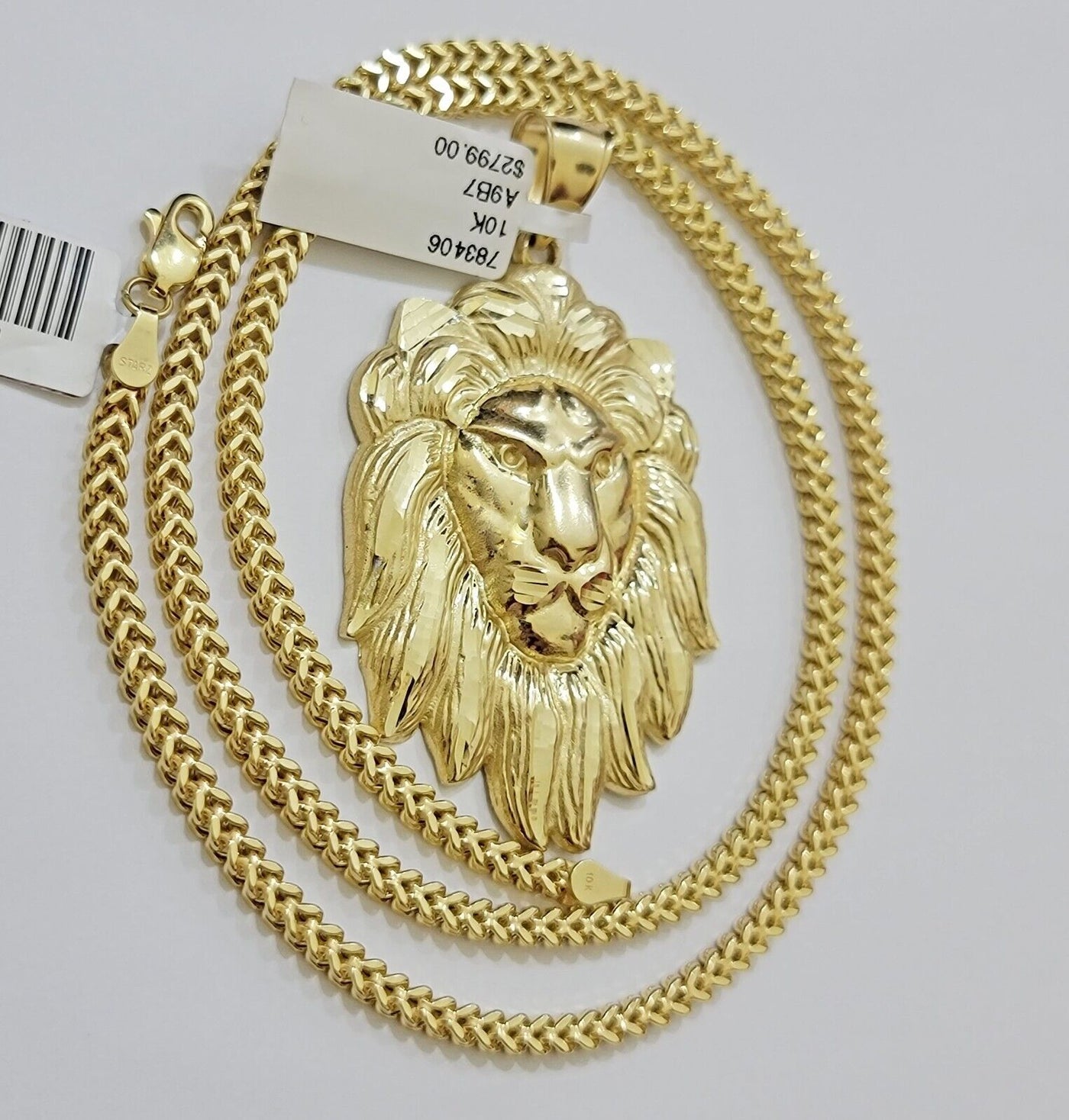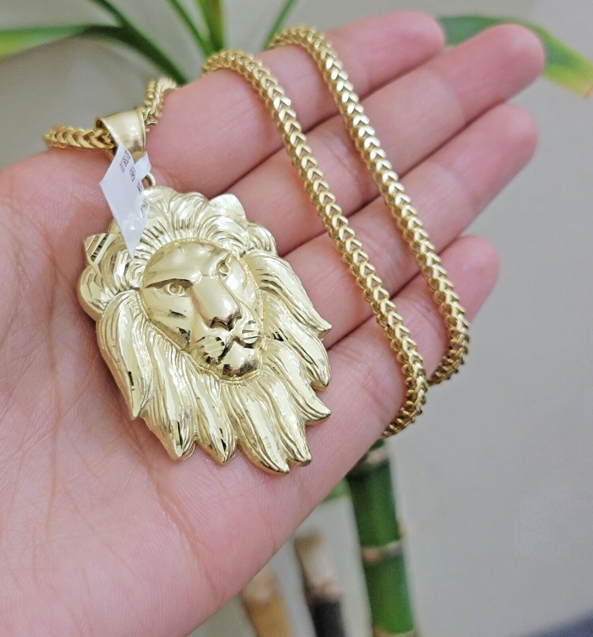 REAL 10k Gold Franco Necklace Charm Lion Head Pendant SET 20 - 26 Inch 3mm Chain - 20in