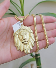 REAL 10k Gold Franco Necklace Charm Lion Head Pendant SET 20 - 26 Inch 3mm Chain