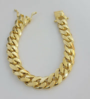 Is Presenting You with This Absolutely Stunning Real 14k Yellow Gold Miami Cuban Link Bracelet 9" Inch (approx) 13mm��bracelet length.��These Beautiful hand Bracelets will not tarnish, discolor, or fade because they are Pure 14K Gold.��We also have them in various another sizes. Please feel free to contact us if you have any queries regarding the item.